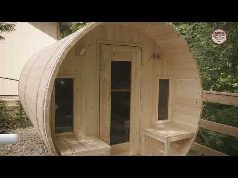 The Canadian Timber Tranquility Barrel Sauna is meticulously handcrafted from Eastern White Cedar, renowned for its light color and distinctive tight knots. This premium wood not only enhances the sauna's aesthetic appeal but also contributes to its durability and soothing aroma. Designed to comfortably seat 6-8 individuals, this sauna is the ideal choice for larger families or as a gathering spot for friends and loved ones. The included 45 cm front porch adds an extra touch of functionality, offering a welcoming space for relaxation before or after your sauna experience.
